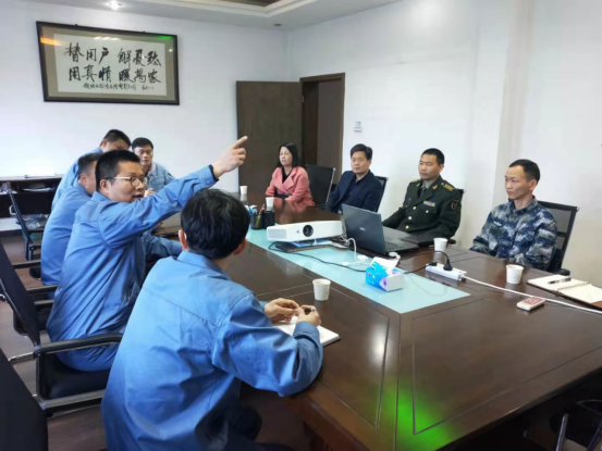 云溪区人武部部长郁发展(左一)长岭炼化人武部部长许慧(左三)云溪区人防办主任刘云飞(右一)