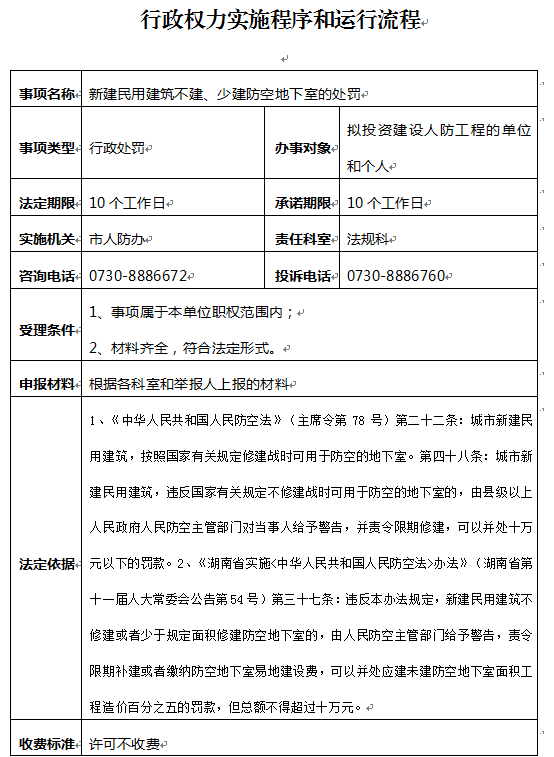 新建民用建筑不建、少建防空地下室的处罚实施程序和运行流程