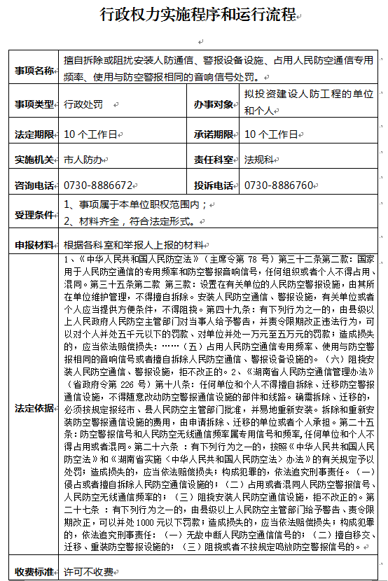 擅自拆除或阻扰安装人防通信、警报设备设施、占用人民防空通信专用频率、使用与防空警报相同的音响信号处罚实施程序和运行流程