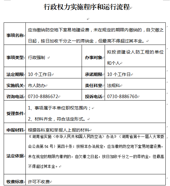 应当缴纳防空地下室易地建设费,未在规定的期限内缴纳的,自欠缴之日起,按日加收千分之一的滞纳金,但最高不得超过其本金实施程序和运行流程