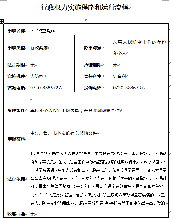 人民防空奖励实施程序和运行流程