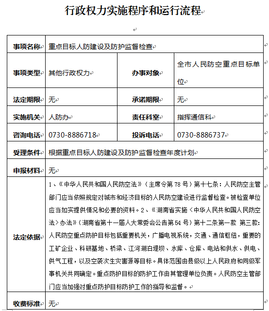 重点目标人防建设及防护监督检查实施程序和运行流程