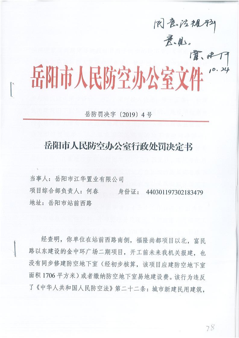 金中环广场二期项目处罚决定书