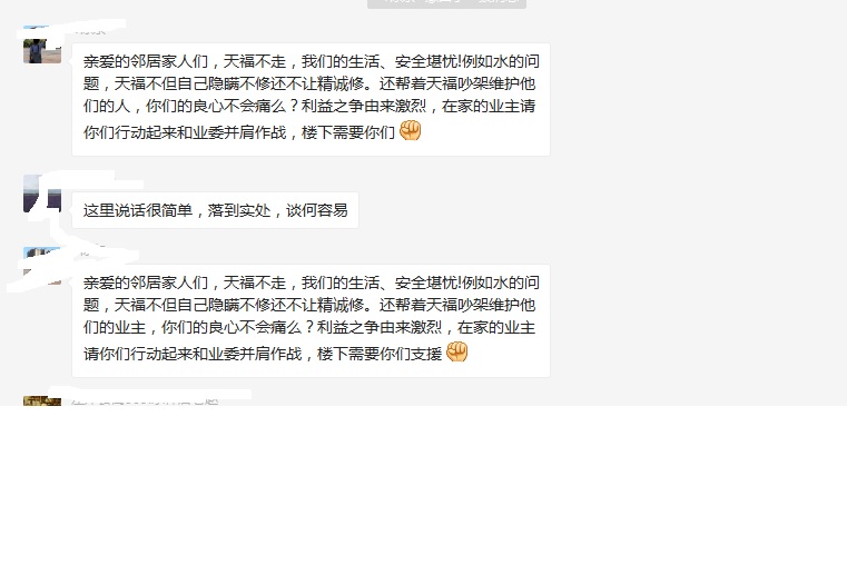 三、在该小区出现矛盾的过程中,我局多次安排人员参与协调,指导街道依法依规对业主委员会进行街道指导。并在协调会上就小区出现的水管漏水等问题,为确保业主正常生活需要,在街道社区对小区业主委员会的招标程序进行审查认定期间,建议暂时由原物业公司负责维修。现小区供水已基本正常。