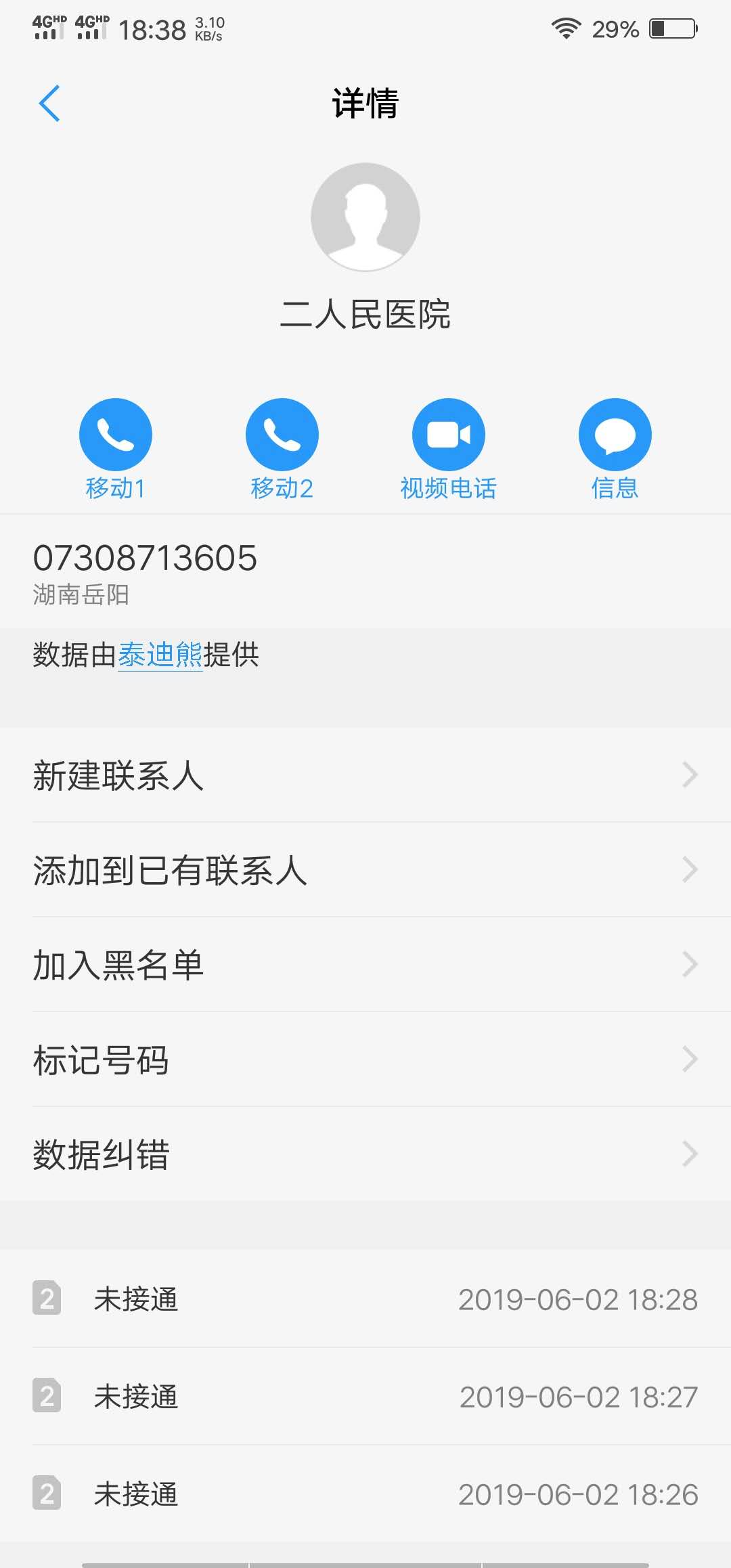 本人平民老百姓,今天想咨询下岳阳市二人民医院一些事情。在岳阳市二人民医院官网上找到的电话,结果还少了一位数,这着实有点形同虚设了。后面另外找到07308713605这个号码,连打多少次均无人接听!!!最后又在岳阳市二人民医院找了个电话07308713500,6月2日18:30接通的,接通后是个男性,那头却是音乐四起,高歌昂昂,我还以为我打到酒吧了!我问了下,是不是岳阳市二人民医院?对方答:是的,你想怎么样?我说:怎么打之前几个电话都没人接啊?,你们上班还开音响听音乐啊?对方答:那几个电话今天没人上班。然后对方就把音响关了,跟我吵了起来。。。
