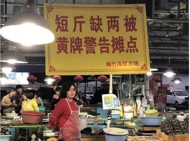 3、发挥公平秤作用,菜市场放置公平秤和两级举报电话,对检查出问题的悬挂黄牌警告(如附件),发挥震慑作用。此方法成本小,外溢效应广,相对监控类的操作较为简单。在