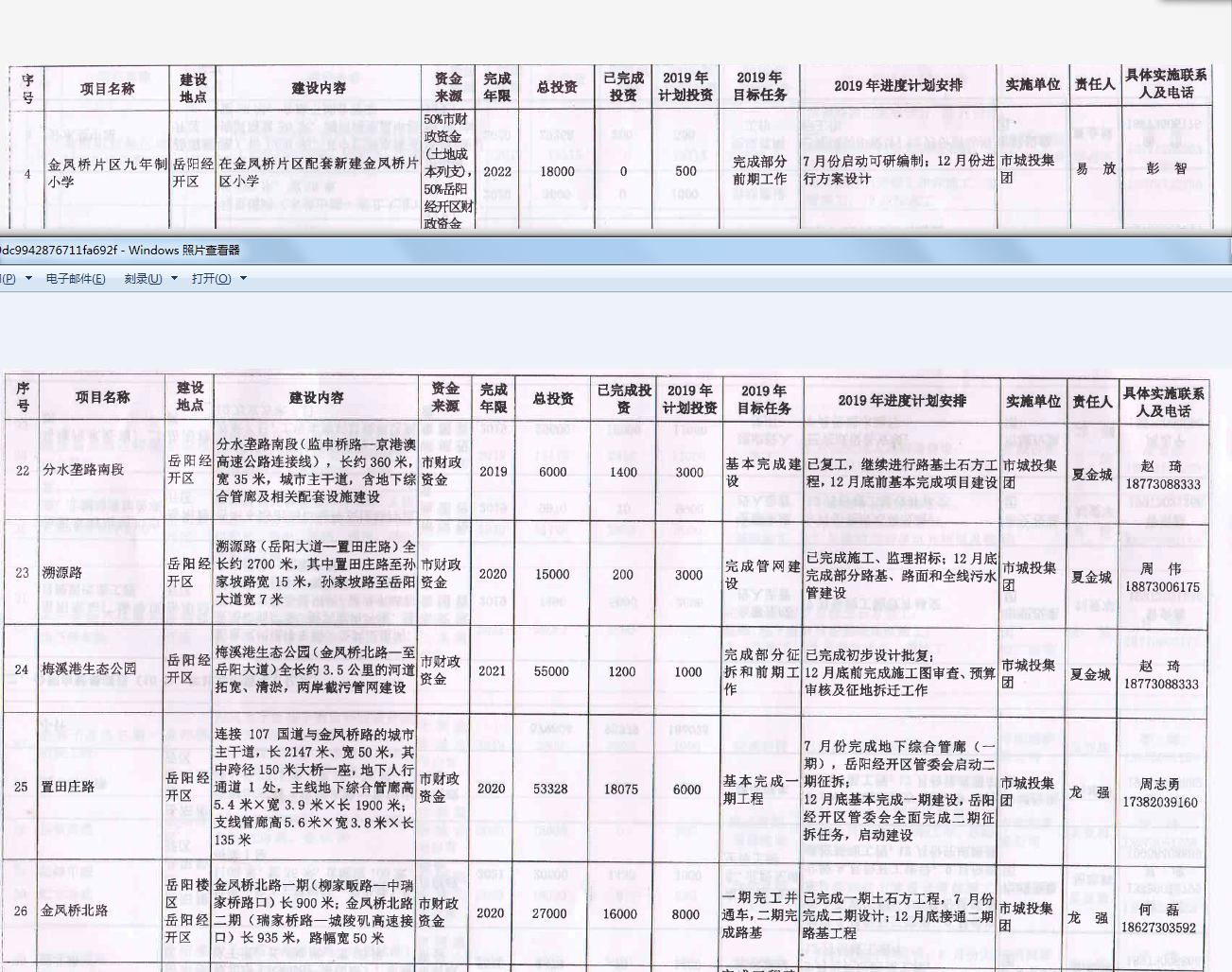 今年6月份出的政府文件《岳阳市中心城区2019年度基础设施建设计划》中,