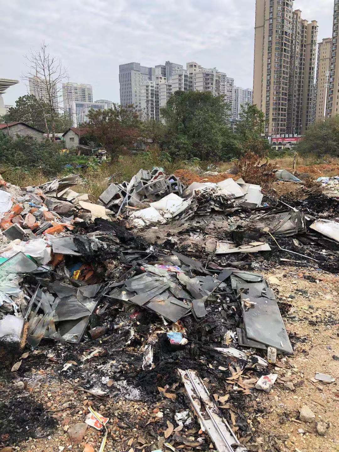 岳阳会展中心正后面,北港社区正对面,富兴御城售楼部周围,一堆堆建筑垃圾、生活垃圾,乘着夜色肆意焚烧,乌烟瘴气,造成严重的环境污染,有毒有害气体严重损害群众身体健康,屡次投诉未见解决,请问何时能落到实处!