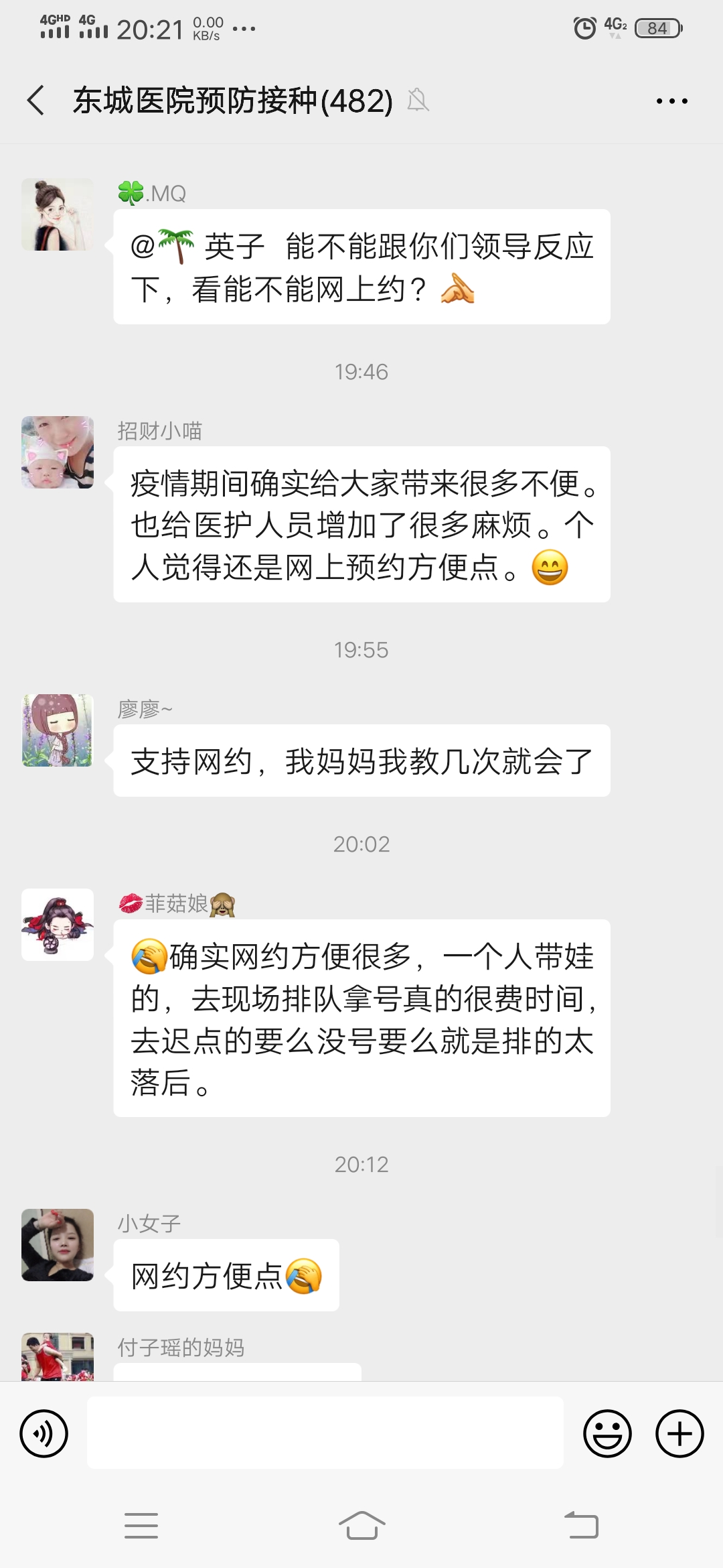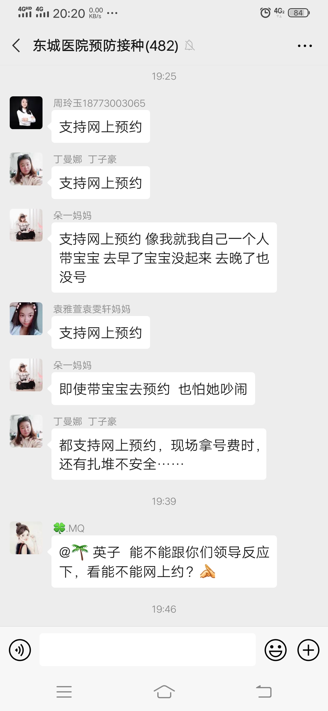 尊敬的各位领导,你们好!首先我是一个宝妈,小宝一直以来都在木里港社区打预防针,那里的小姐姐们工作热情也很负责任,请允许我道一声谢谢你们,你们辛苦了!宝宝以前打预防针是上午随到随打,疫情期间为了避免扎堆情况是在app上预约时间了再过去打预防针,每五到十分钟预约一个宝宝,此方法一致得到了宝妈群的好评!可接通知从5.4号起要到医院去排队取号,且每天只有50个名额,名额取完去了也打不了!宝妈群里开始“讨论”了,去晚了拿不上号打不了去了也白去,去早点如果拿的40几号的话得等大半天不说而且还全部扎堆在一起,小孩抵抗力低,现阶段我们做家长的也怕呀,而且群里支持网约的呼声一大片!望上级单位酌情作调配!感谢??