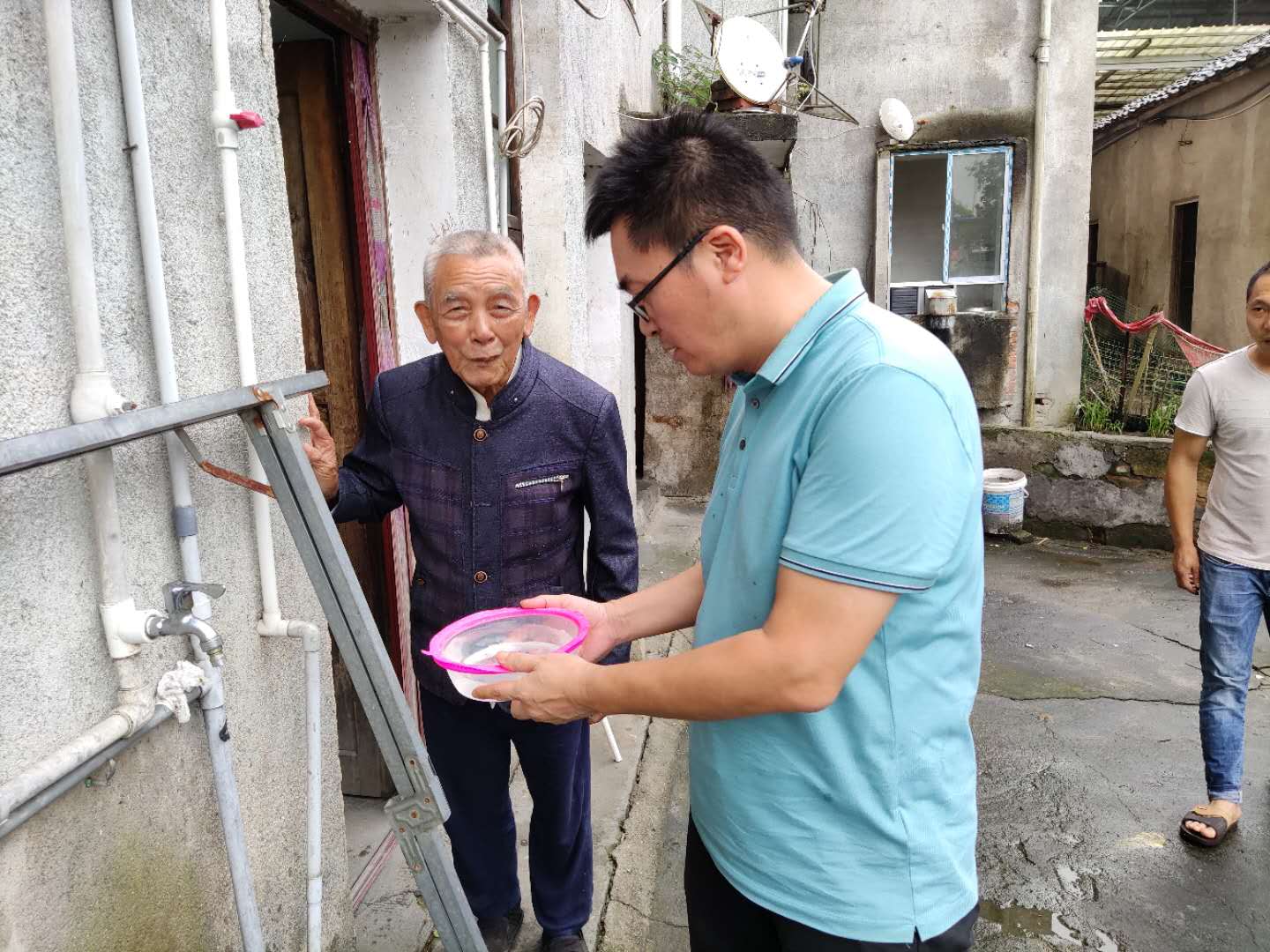 附件:镇党委书记、镇长、分管副职干部、自来水厂负责人在学校、居民家中实地查看自来水水质图