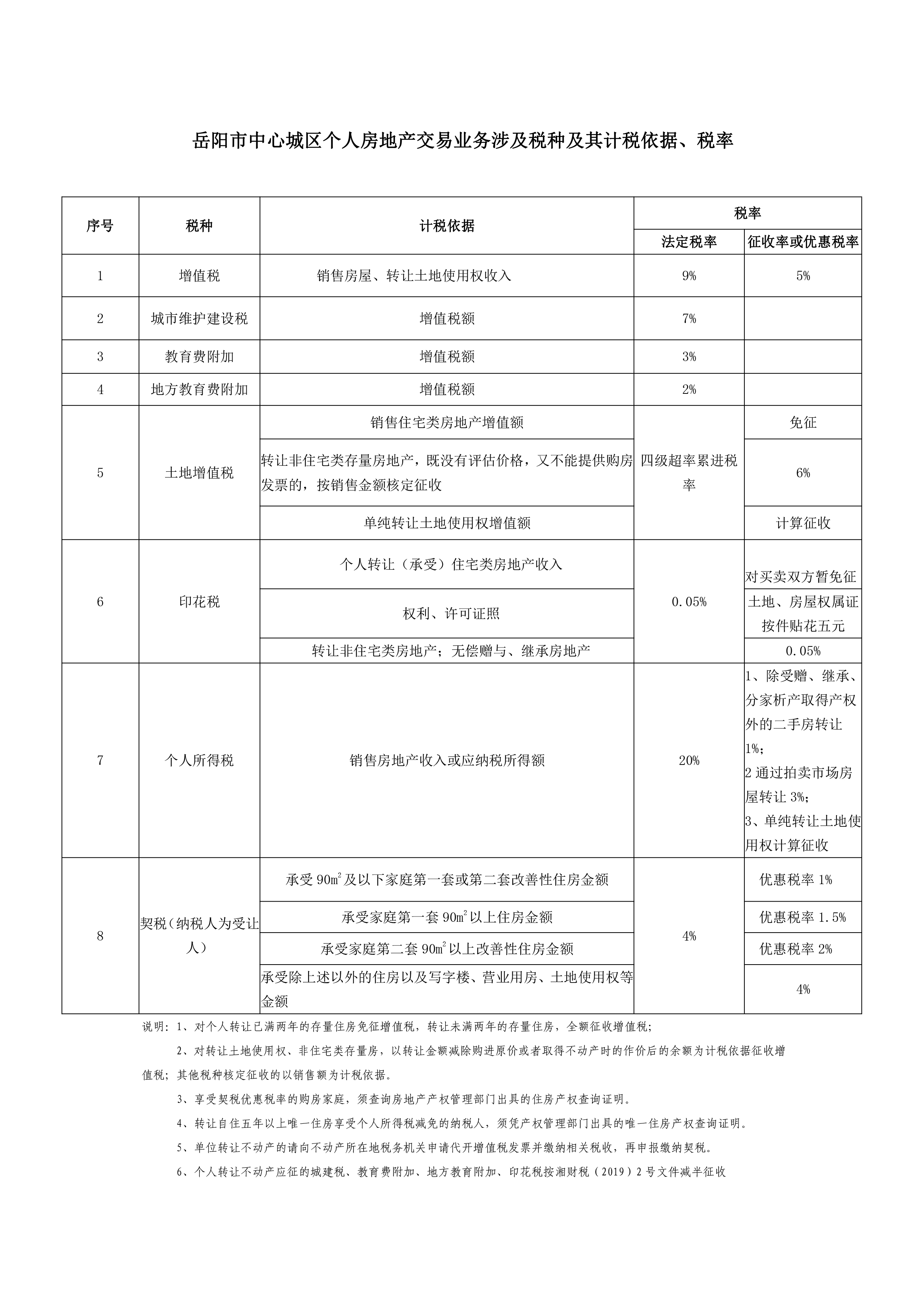 您好,个人房地产交易业务涉及的税费请参考下表,具体政策可电话咨询市政务中心税务窗口8882015。