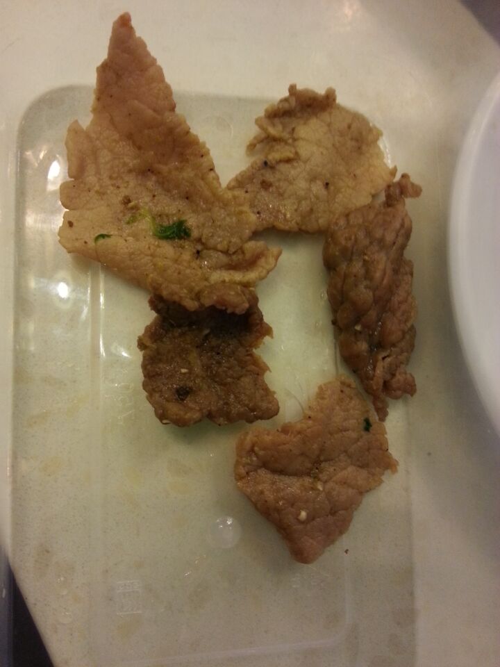 我局执法人员钟进华、陈川对投诉事件进行了现场检查。经调查,于2015年3月31日10点左右,电话回复投诉人Sauvignon,认为投诉的单位为合法经营,提供的菜品“麻辣牛肉”没有掺杂猪肉或其他肉制品,原因是服务员就反映的情况没有进行认真解释,且态度很一般,事实是提供的原料为水牛肉存在这种情况。 投诉人对回复表示满意和理解。