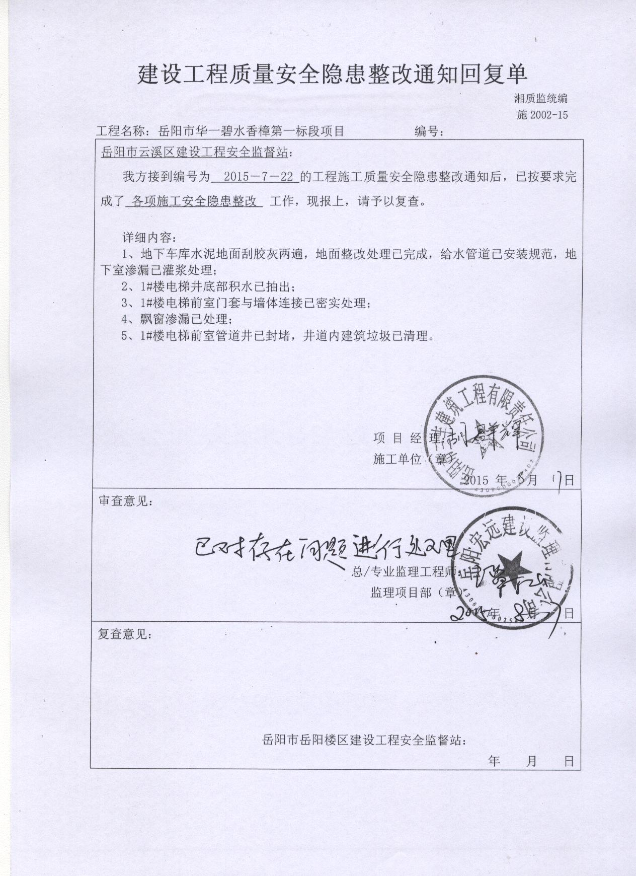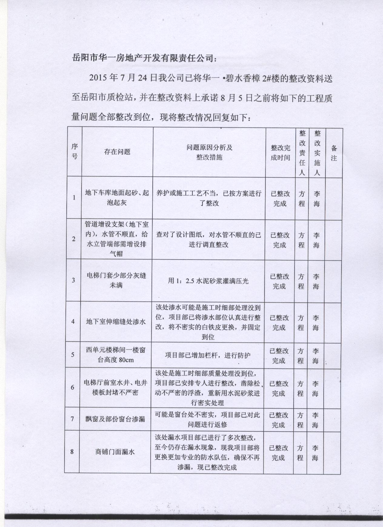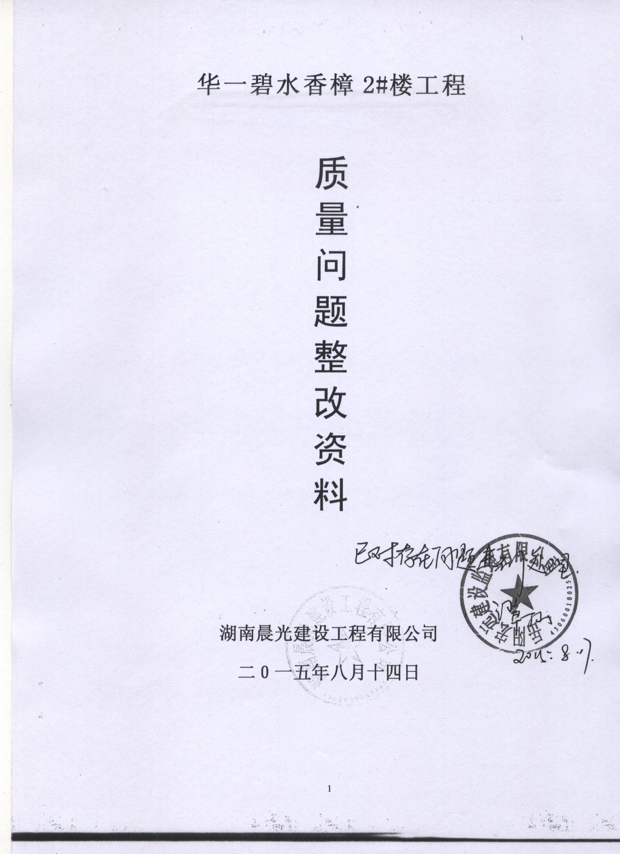附件一:华一碧水香樟1#、2#楼工程质量问题整改资料