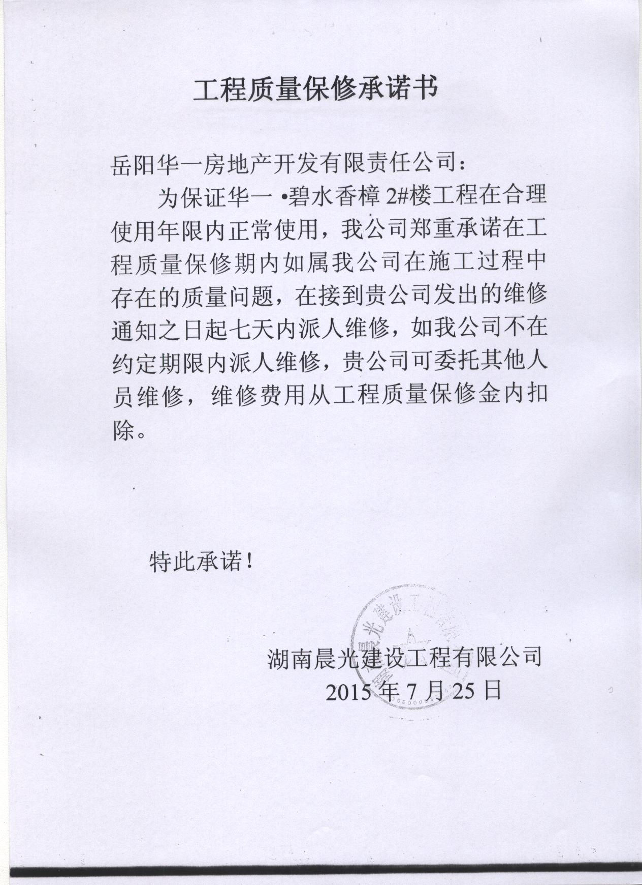 4、对于总包单位施工范围内存在的质量缺陷,各责任主体单位均承诺只要发现就会立即整改到用户满意为止。