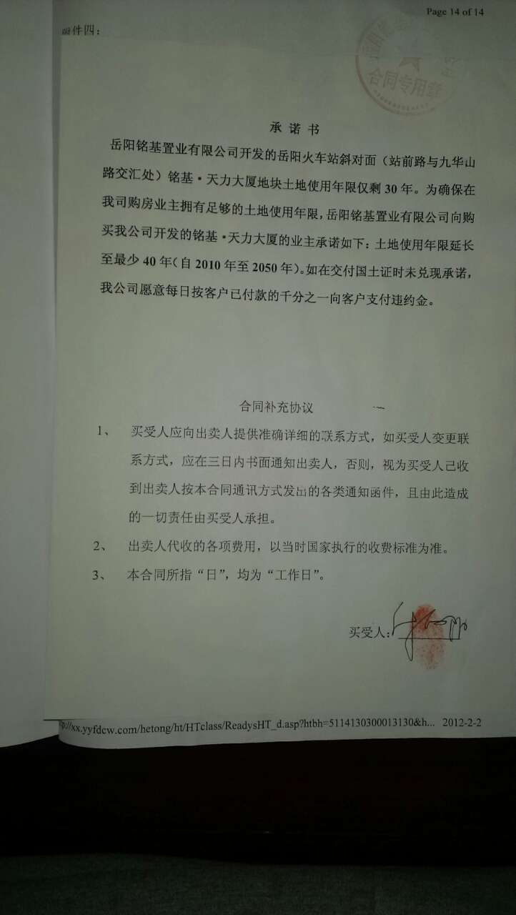 1、出售铺面时的欺诈行为。开发商在明知无法办理40年国土使用权证的情况下书面承诺购买人办理使用年限至2050年的国土证,以欺诈行为蒙骗我一次性付款购买了此铺面。目前部分业主收到的国土使用权证年限至2034年,实际使用年限只有20年,与承诺相关甚远。而我及其他一次性付款的购房人至今仍未给办理国土证及房产证。