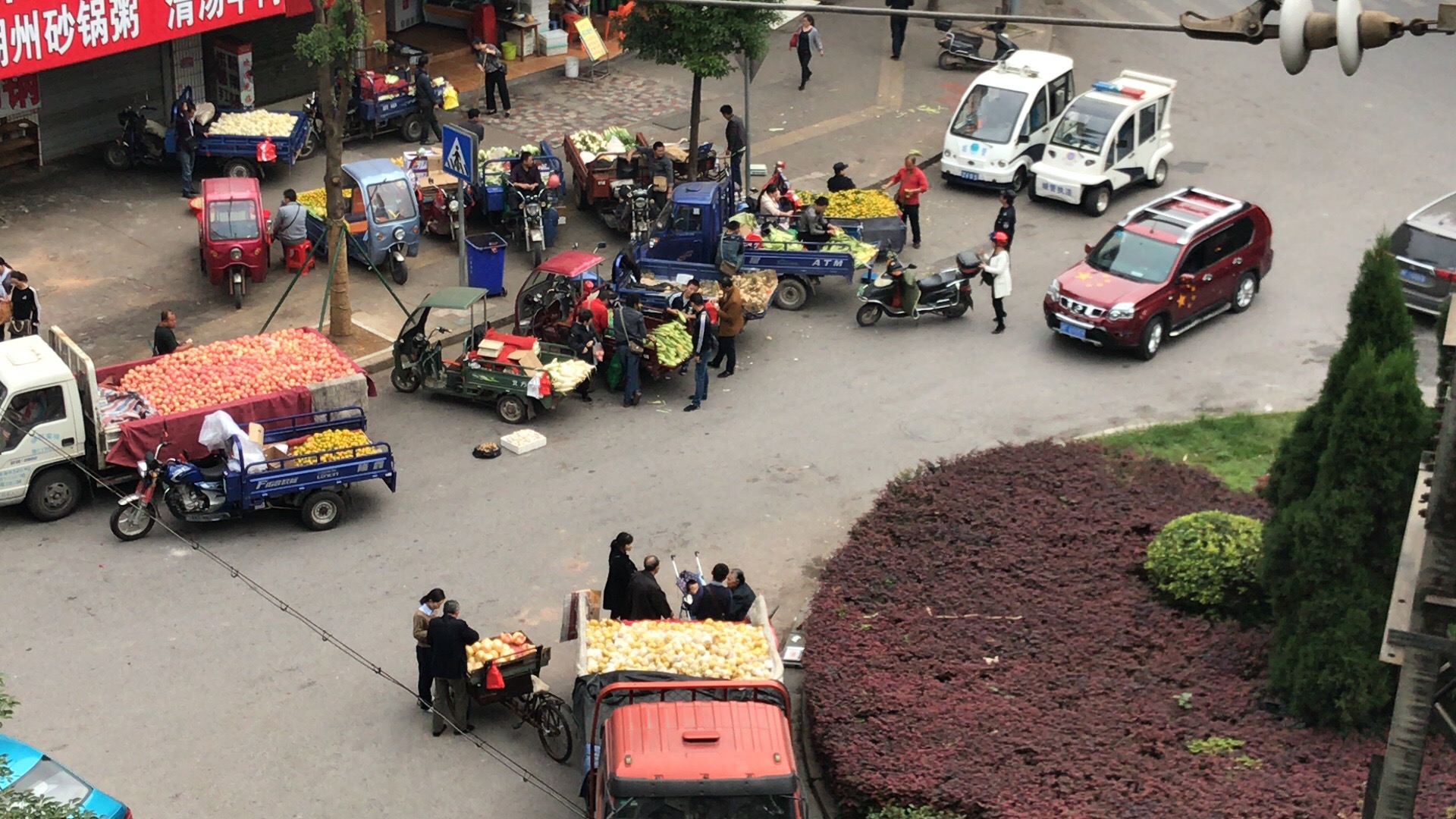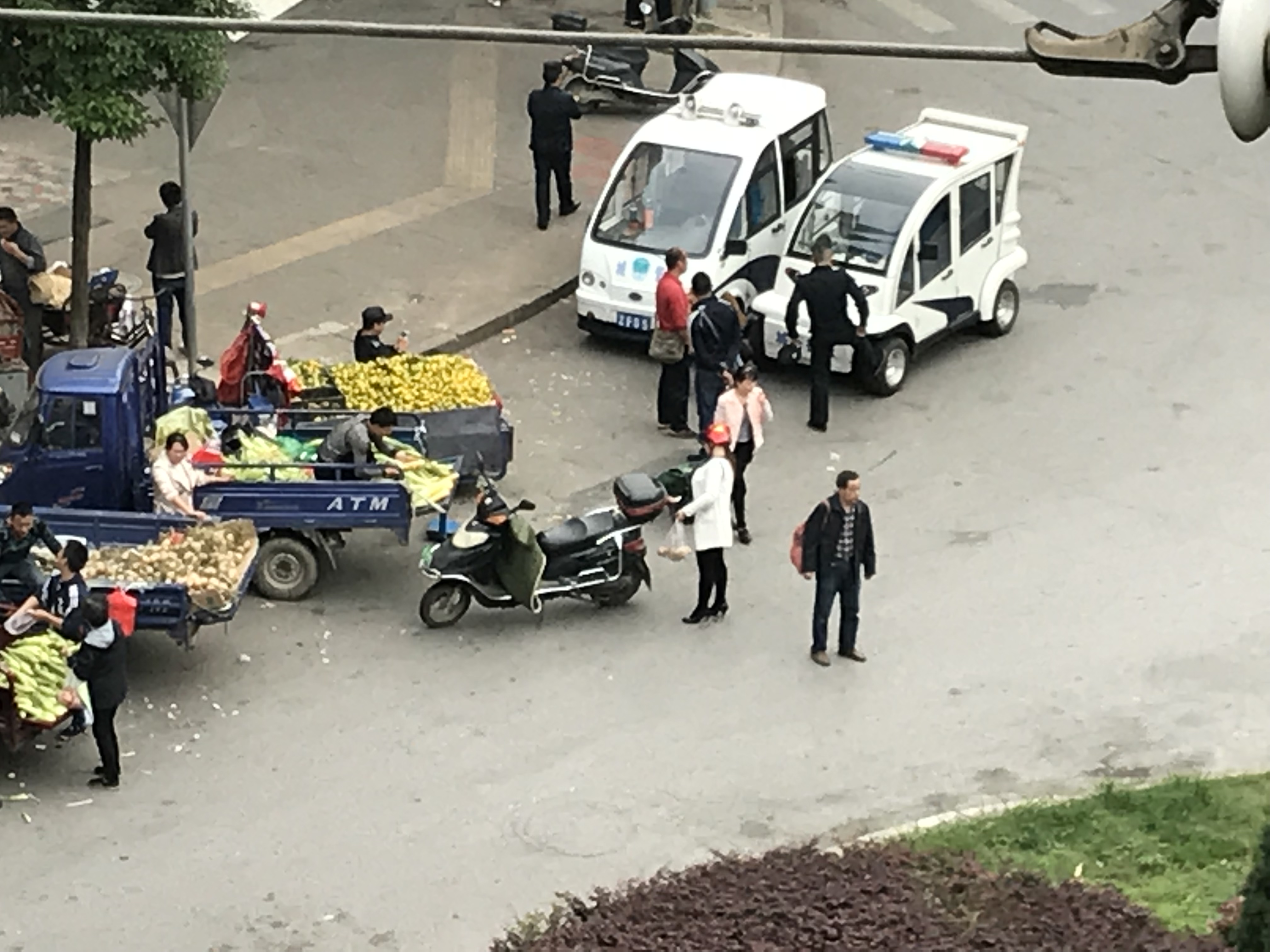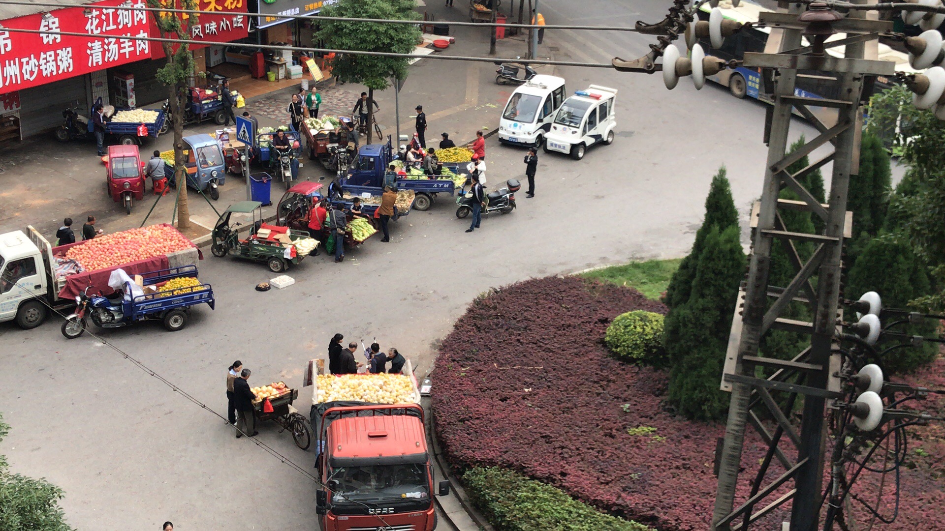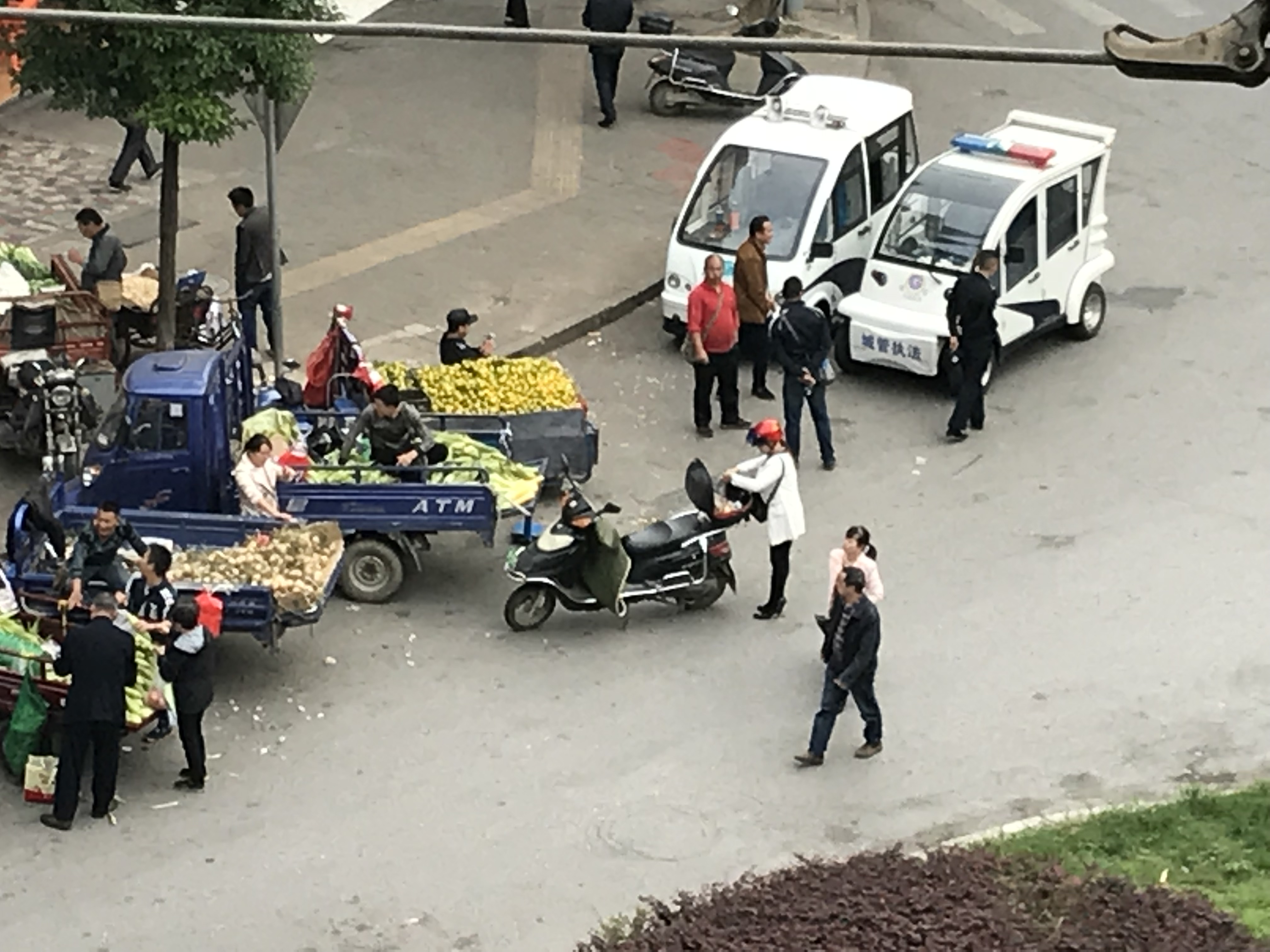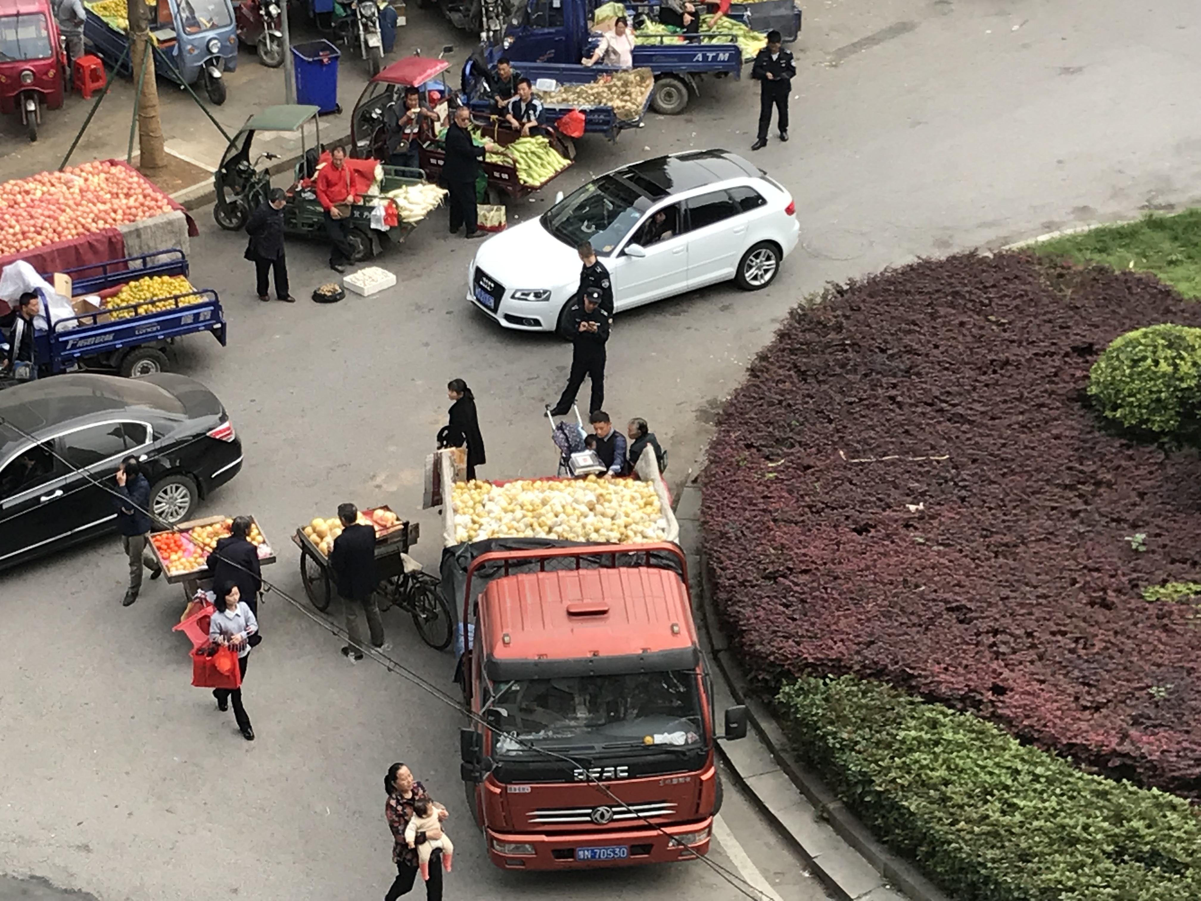 从文明城市复查以来,花板桥菜市场的流动摊贩被赶至花板桥公交总公司门口转盘处占据人行道和机动车道违规经营,并且用高音喇叭宣传,严重影响我市文明城市形象,也影响到花板桥周边居民的工作及生活。有现场图片为证,城管队员在场也没有制止及驱逐的意思。希望政府相关部门能尽快处理违规经营现象,还市民一片蓝天。