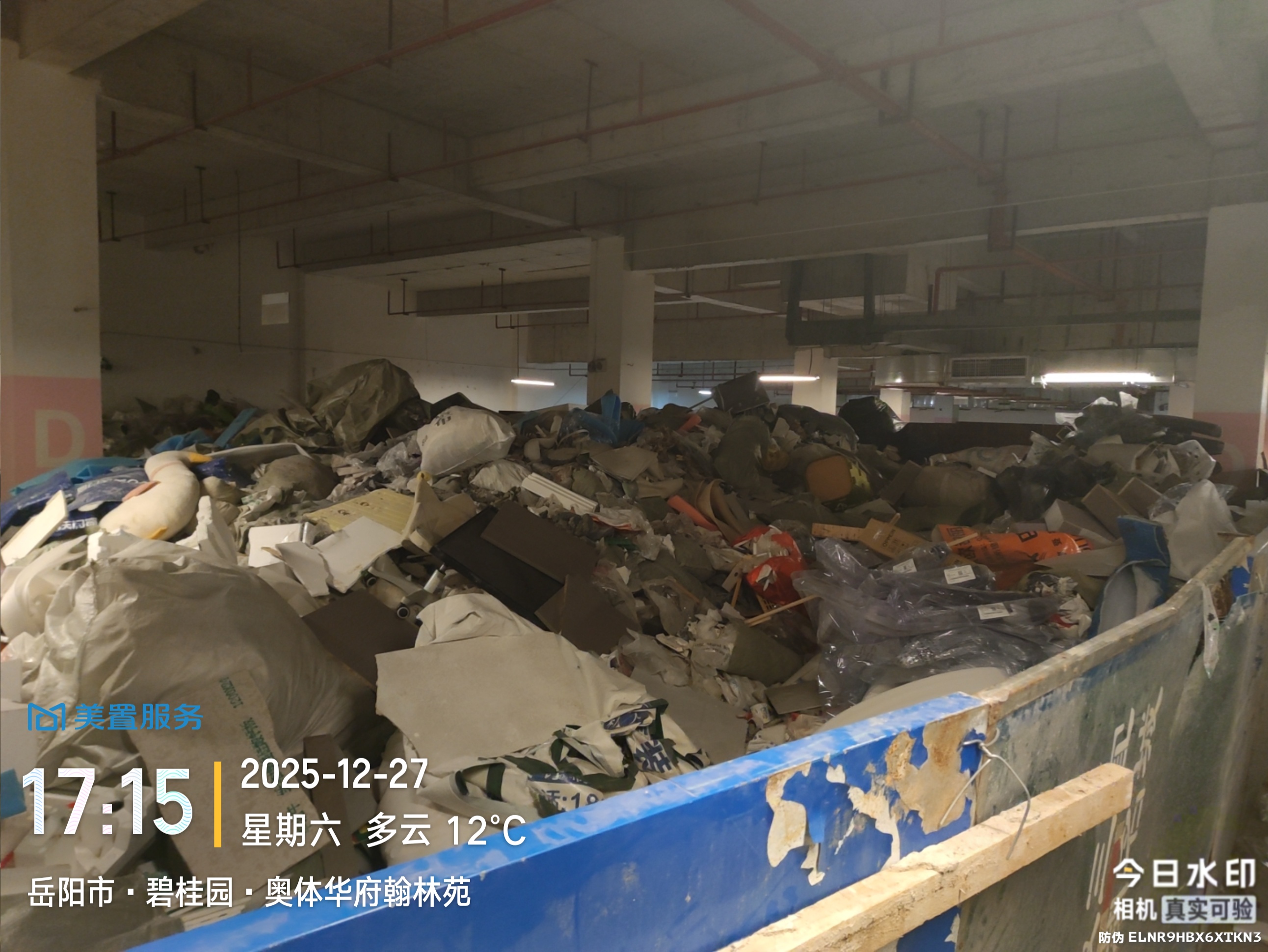 年关将至,希望有关部门能够督促清运,恢复地下车库的卫生,还小区一片干净。